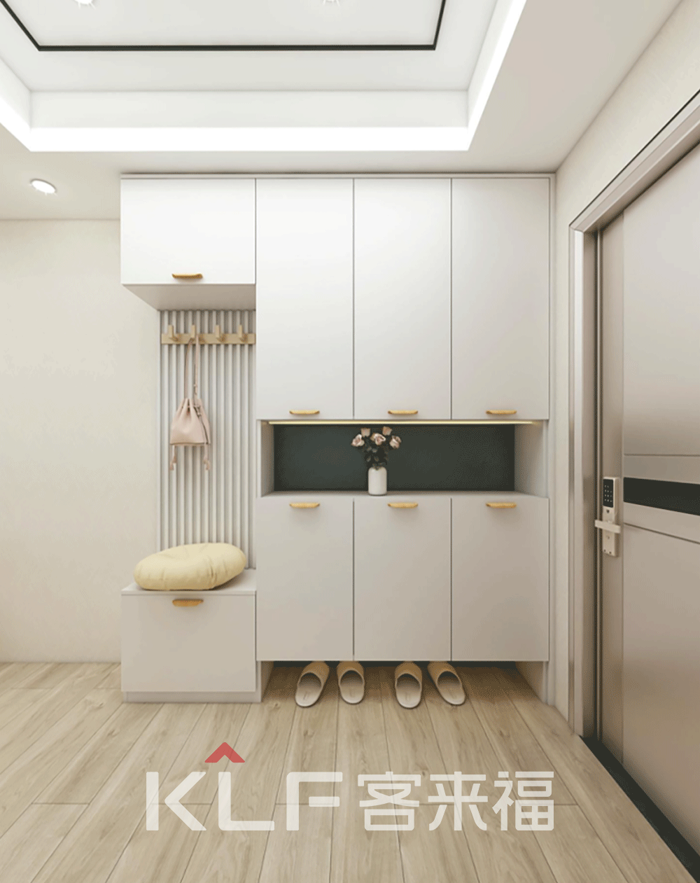 我們按照屋主人的喜好,采用了簡潔現(xiàn)代的裝修風(fēng)格,整體以黑白灰為基礎(chǔ)色,風(fēng)格樣式不會(huì)輕易過時(shí)。入戶、客餐廳、陽臺(tái)我們將其連成了一個(gè)整體,光可以直射進(jìn)來,讓客廳看起來更加明亮。入戶柜的設(shè)計(jì)簡潔大方,原木色的柜體搭配金屬把手,簡單而不失內(nèi)涵。中空和下空式設(shè)計(jì),讓鞋物包包更加方便拿取。我們還貼心的為屋主人設(shè)置了一個(gè)換鞋的地方,讓本身不太明顯的入戶柜獨(dú)具風(fēng)格。