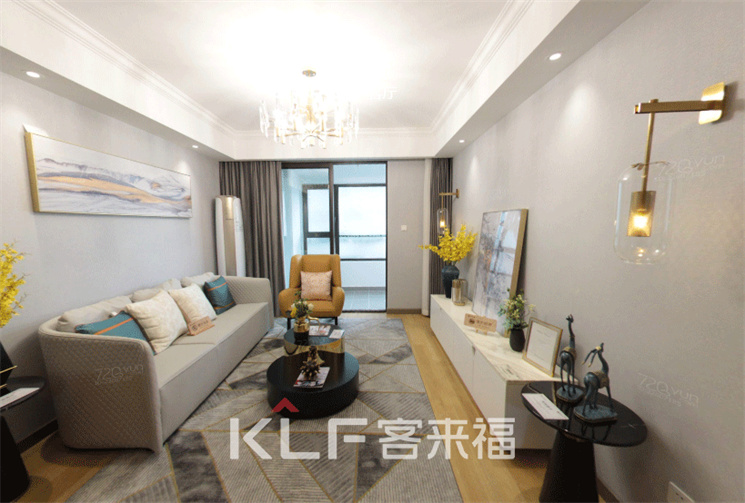 我們在客廳空間的設計上以灰白為基調,采用大張地毯搭配空間,沙發(fā)規(guī)劃出客廳場域,墻面搭配開放式電視柜,窗簾與局部的亮色軟裝呼應。在明亮頂燈的映襯下,木質地板的暖意慢慢散發(fā),在白色的空間氛圍中構建輕柔、舒適,心都安逸下來。