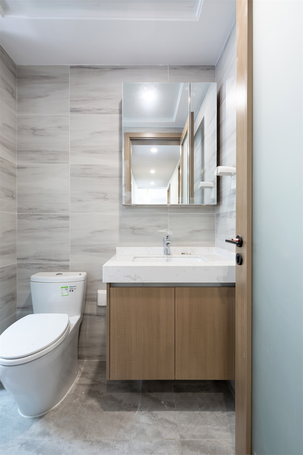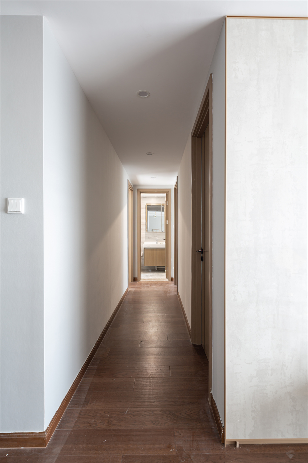 走廊處直接可以通向衛(wèi)生間,由于走廊兩邊空間比較狹窄,所以并沒有在兩邊做多余的裝飾。