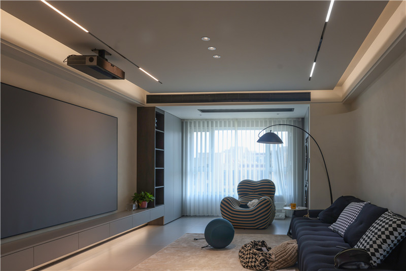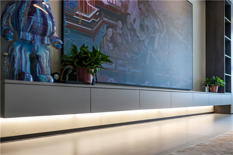 客廳空間想要做到簡潔的美感,需要對物品進(jìn)行精細(xì)的區(qū)分與收納,除了抽屜造型的懸空電視柜,我們還在陽臺兩側(cè)做了收納。