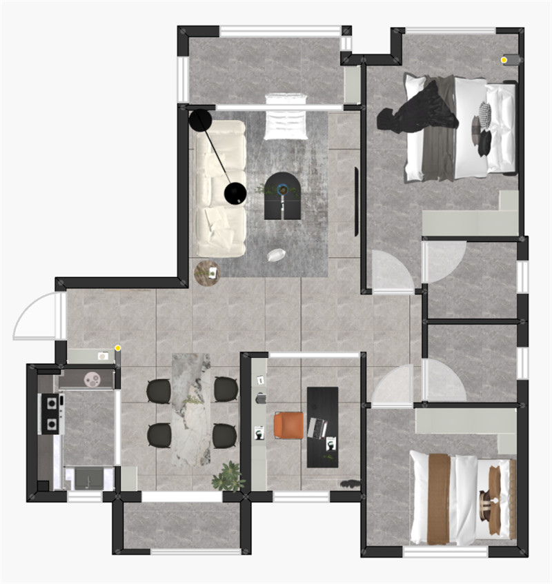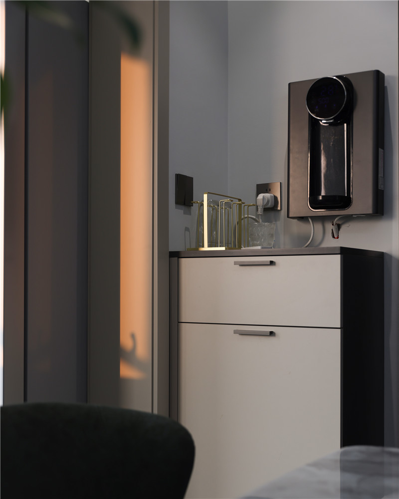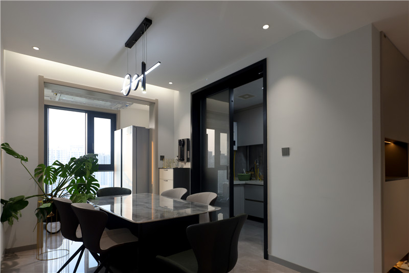 有室有食,簡單幸福。堅守功能主義的理念,以結(jié)構(gòu)為入眼點(diǎn)布局色彩、設(shè)計,使得動線明晰;蘭迪灰門板與黑色調(diào)的中和,簡約又不失大氣感。