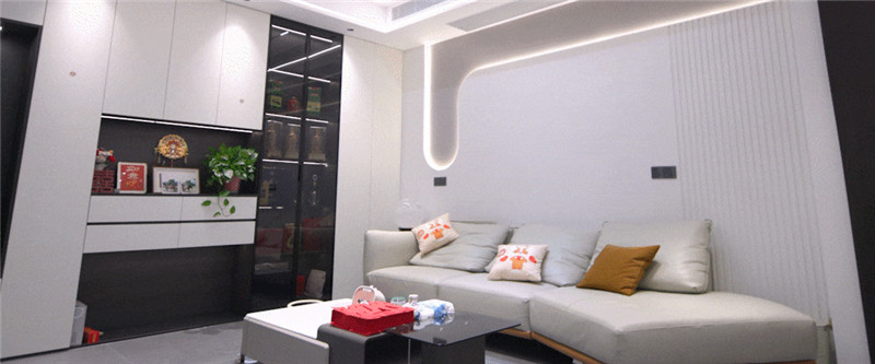 全屋色彩以芬蘭白、黑木紋為主調(diào),簡約雅致,其整體到細節(jié)的考究,展現(xiàn)出人們對生活品質(zhì)的追求。