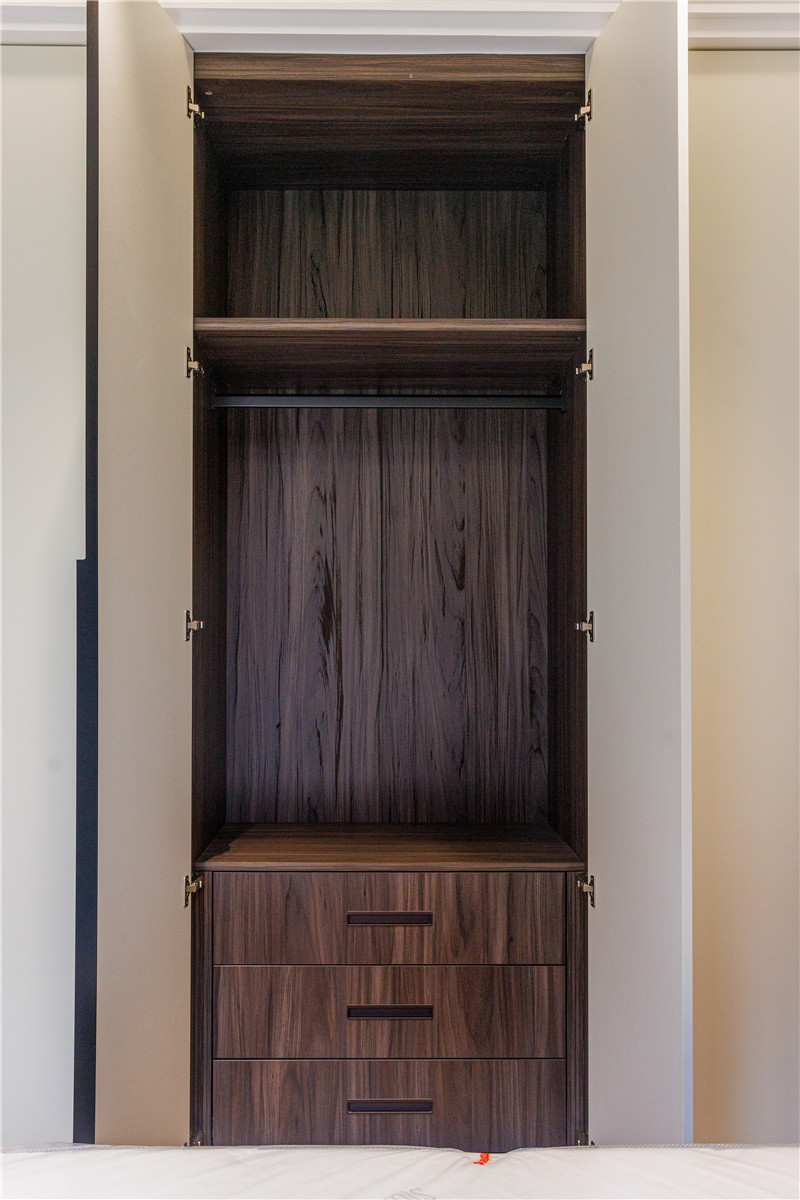 主臥和次臥的空間布局沒有太大差別,一柜到頂?shù)姆姨m白色系衣柜能夠打造清新的簡約風(fēng),內(nèi)部做抽屜分區(qū)收納或是做掛衣區(qū)都兼顧了實(shí)用主義。