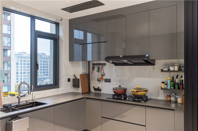 廚房U型構造,根據墻體布局而建,洗切烹盛的動線提升便捷度。