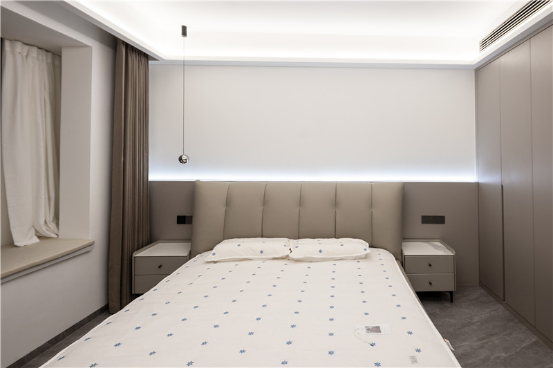 臥室作為休息和獨(dú)處的空間,安靜而溫馨是必須的,顏色搭配、功能收納的協(xié)調(diào)統(tǒng)一,是屋主品質(zhì)追求的外在呈現(xiàn)。