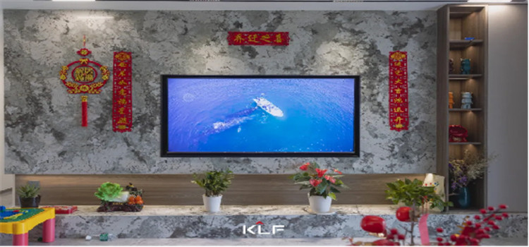客廳整個(gè)打通后進(jìn)行地磚通鋪,延伸了空間視覺感,在客廳的空間設(shè)計(jì)上以簡繁結(jié)合的方式,在電視柜背景墻上,以大理石石材進(jìn)行裝飾,為全屋帶去更多的冷感。
