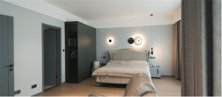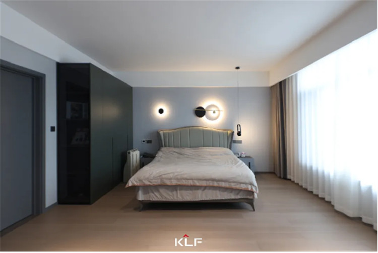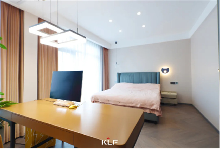 女兒房:一體化設(shè)計(jì)+藏八露二原則,整潔清爽;水洗灰柜門結(jié)合黑玻,美感在線。