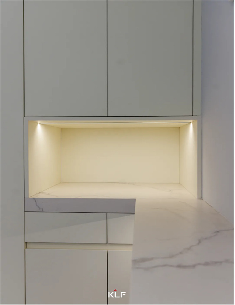餐邊柜收起生活的繁雜,還原高端定制的有序與雅致。設(shè)計(jì)師延伸柜體轉(zhuǎn)角后在地柜上留了一個(gè)西廚的操作臺(tái),中西廚結(jié)合,包容每一位家人的飲食習(xí)慣,讓用餐與烹飪自成一體,傾情享受他們的“食光”。