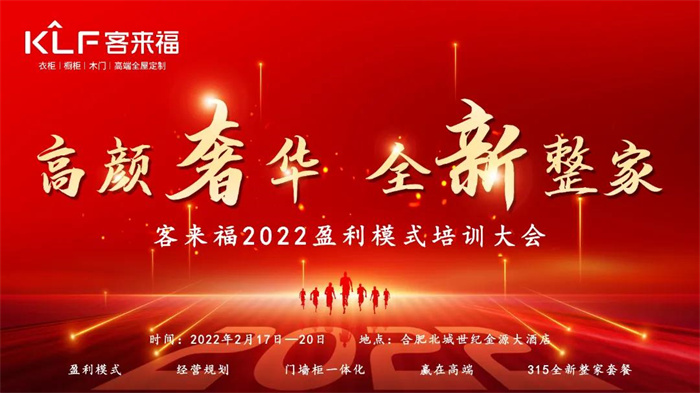 2022217-20日為期四天,以“高顏奢華,全新整家”為主題的客來福2022盈利模式培訓(xùn)暨3.15活動(dòng)啟動(dòng)大會(huì)在安徽合肥圓滿落幕,是對(duì)既往奮斗歲月的總結(jié),也是奮斗新征程的開啟。在2021年作出突出貢獻(xiàn),業(yè)績(jī)輝煌的經(jīng)銷商在這里不僅得到表彰和肯定,也對(duì)未來的發(fā)展收獲了信心,希望在全新戰(zhàn)略格局的帶領(lǐng)下,以創(chuàng)新融合的發(fā)展思維和專業(yè)奮進(jìn)的心態(tài)共同開啟客來福品牌未來新篇章,讓我們勠力同心,一起聚勢(shì)謀遠(yuǎn),共展虎年宏圖!