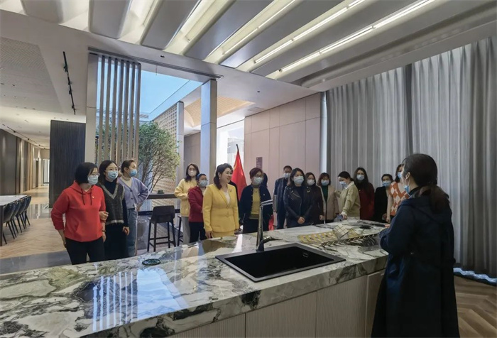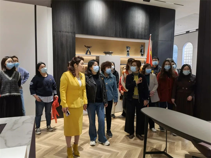 在魏總裁的帶領(lǐng)下,考察團首先來到客來福第十二代高定展廳。在展廳內(nèi),幸福路小學(xué)校長一行近距離接觸了客來福的全新系列產(chǎn)品,對于智能化帶給客來福的改變有了更為深入的了解和認識。