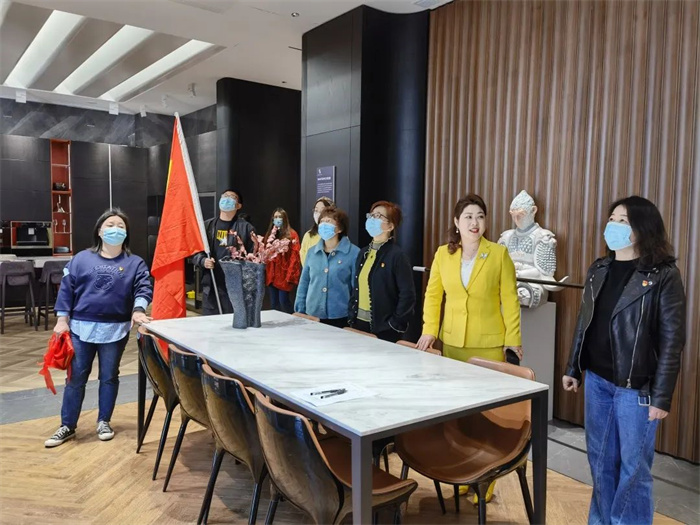 參觀告一段落后,考察團與客來福尹董事長前往會議室學(xué)習(xí)探討黨建工作開展的相關(guān)內(nèi)容,會議首先由客來福家居股份有限公司黨支部書記尹其宏董事長介紹客來福“12358”黨建體系及黨建成果。隨后雙方對黨建相關(guān)內(nèi)容進行了友好的交流與探討。
