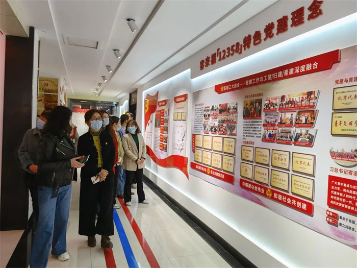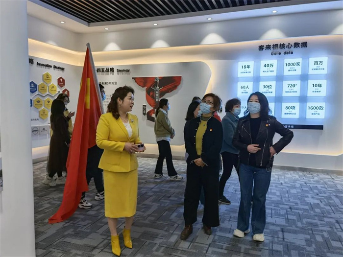 隨后,考察團來到客來福企業(yè)文化墻區(qū)域,在魏總裁和解說員的介紹下,考察團一行對于客來福的發(fā)展歷程以及黨建工作開展有了更全面的認識。