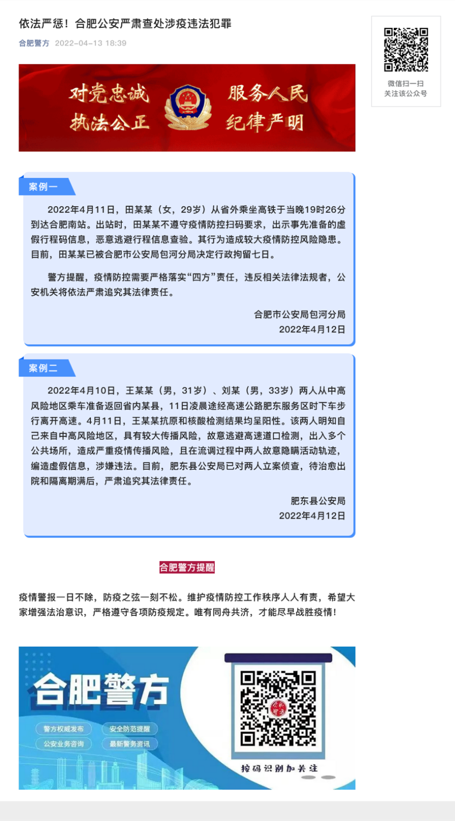 依法嚴(yán)懲!合肥公安嚴(yán)肅查處涉疫違法犯罪