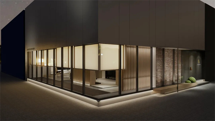 在即將到來的建博會(huì)上,革物為大家?guī)淼氖侨谌敫嗳宋那閼押蜁r(shí)代精神的東方系列作品。本次展廳共分為四個(gè)區(qū)域:洽談區(qū)、木皮產(chǎn)品區(qū)、極簡產(chǎn)品區(qū)、前廳接待區(qū),在展廳中融入拱形墻、外擴(kuò)圓弧、格柵設(shè)計(jì),將中式元素融入景觀中,形成相互交融,彼此和諧共生的綠色新景。