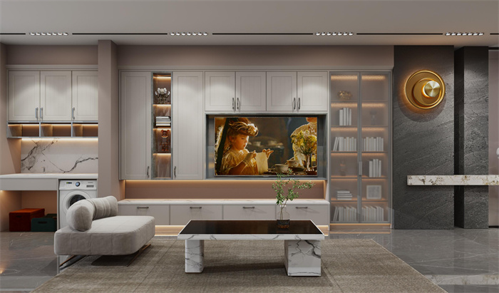 小戶型家庭在沒有儲物間的情況下,收納柜便是你的好幫手??蛷d不要再做浮夸的背景墻,做成定制電視柜,簡潔又能裝。櫥柜要貼合房間構造來設計,吊柜+地柜+高柜的組合讓你囤再多都不怕。陽臺柜也要安排上,多做隔板,便于科學歸置各類生活物品。