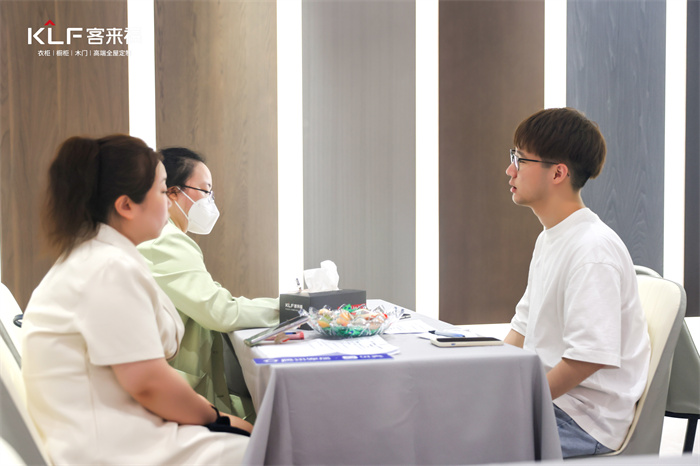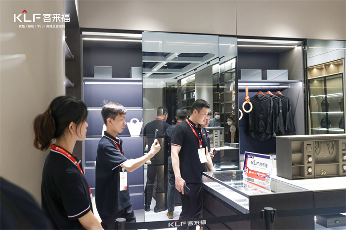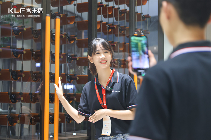 本次中國建博會(上海)高定展館備受矚目。一大早,客來?!じ镂镎箯d內(nèi)就有眾多意向商及客戶前來咨詢加盟政策、了解產(chǎn)品色彩、板材、工藝運用等,客來福專業(yè)人才隊伍以貼心及周到的服務(wù),為大家答疑解惑。