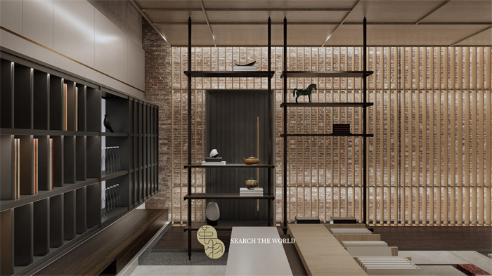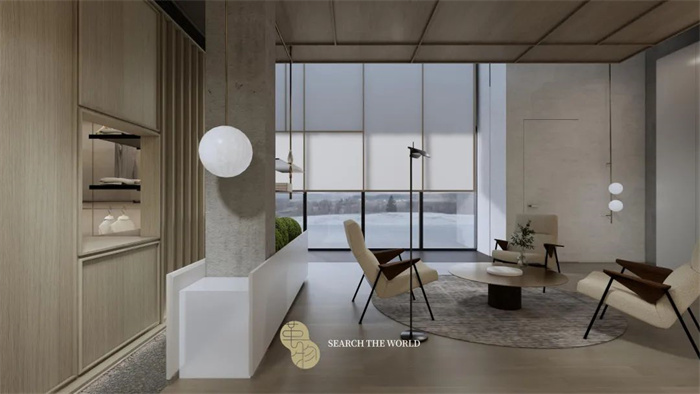在望湖美家居門店中,革物的家居產品以簡奢與國潮為主要呈現(xiàn)風格,使用簡約的手法去呈現(xiàn)木作家居原本的質感與紋理。通過空間的留白手法,讓光影隨家居線條而轉換,在目光所及之處靜享這份空間內的時光雋永。
