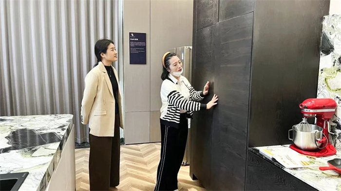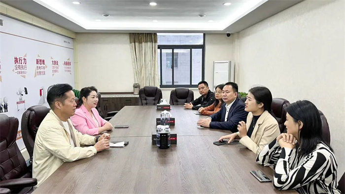 最后,雙方來到會議室進(jìn)行了更加深入的交流,來訪領(lǐng)導(dǎo)聽取了客來福“一劍雙刃”的戰(zhàn)略方案,并針對客來福高端全屋定制的品牌定位與尹董、魏總展開了探討。