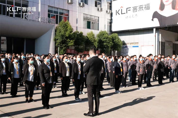 首先進(jìn)行的是升國(guó)旗奏國(guó)歌儀式,客來(lái)福家居作為民族企業(yè),始終堅(jiān)決地將愛(ài)國(guó)擁黨作為企業(yè)發(fā)展的首位。在飄揚(yáng)的旗幟下,客來(lái)福全員進(jìn)行企業(yè)價(jià)值觀宣讀,客來(lái)福家人們將通過(guò)不懈努力和精進(jìn)合作,實(shí)現(xiàn)品牌發(fā)展的美好愿景。