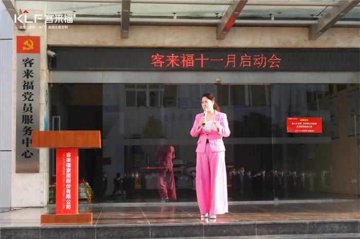 十一月的到來(lái),意味著2022年即將進(jìn)入尾聲,客來(lái)福家居于11月7日在華東生產(chǎn)基地隆重召開(kāi)了十一月啟動(dòng)大會(huì),客來(lái)福家居股份有限公司董事長(zhǎng)尹其宏、總裁魏金華及客來(lái)福家居全體員工共同參與了本次啟動(dòng)大會(huì)。