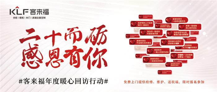 客來福家居感恩老客戶,帶著滿腔熱情與專業(yè)的服務,進行年度暖心回訪行動。“二十而礪,感恩有你”,客來福家居創(chuàng)立二十年之際,將為更多家人們免費提供產(chǎn)品檢查、維護、調試、保養(yǎng)等服務,煥新家居空間,還原生活本色。