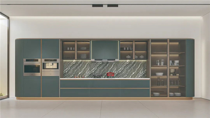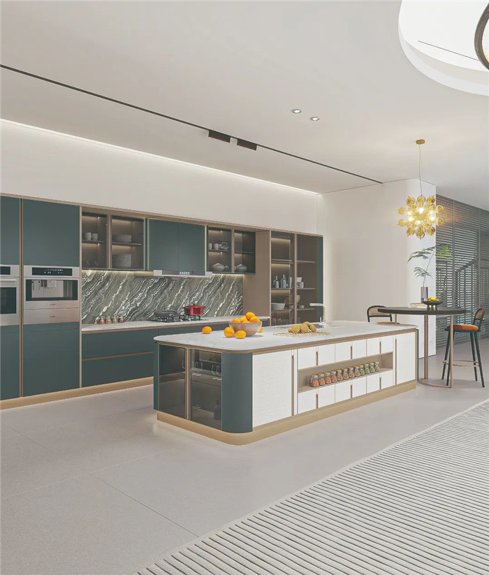 采用圓弧包邊設(shè)計(jì),將圓弧貫穿整套產(chǎn)品,勾勒溫潤(rùn)柔和質(zhì)感。免拉手燈柱和鋁合金燈帶,盡顯高貴與優(yōu)雅。既富有意式侘寂的設(shè)計(jì)風(fēng)尚,也是對(duì)今年高定流行元素的創(chuàng)新性結(jié)合。