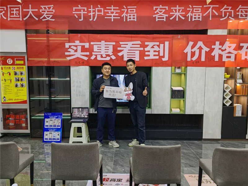 2023年5月8日—5月14日,客來福運營督導(dǎo)劉杰、殷賢旗走進(jìn)甘肅隴西客來福店,和店面老板、銷售人員、設(shè)計人員一起開展“實惠看得到,價格砍到底”主題活動。
