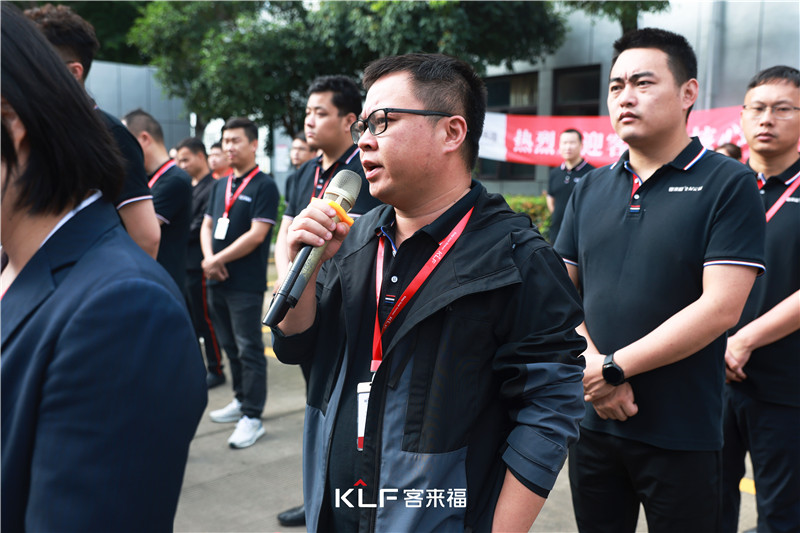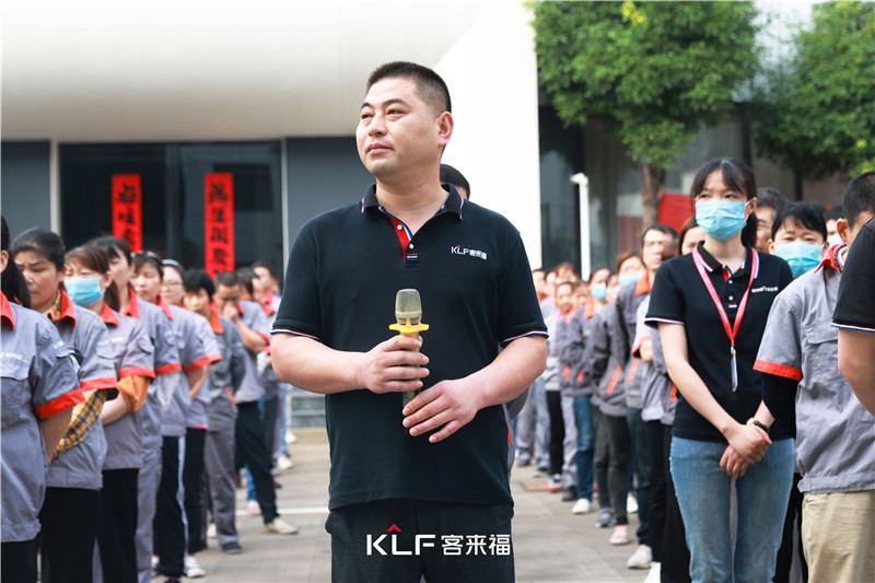 隨后客來福家居總裁魏金華作動員講話,強調(diào)隨著訂單的增長,產(chǎn)品質(zhì)量也需嚴格把控,嚴格落實生產(chǎn)十二字方針。