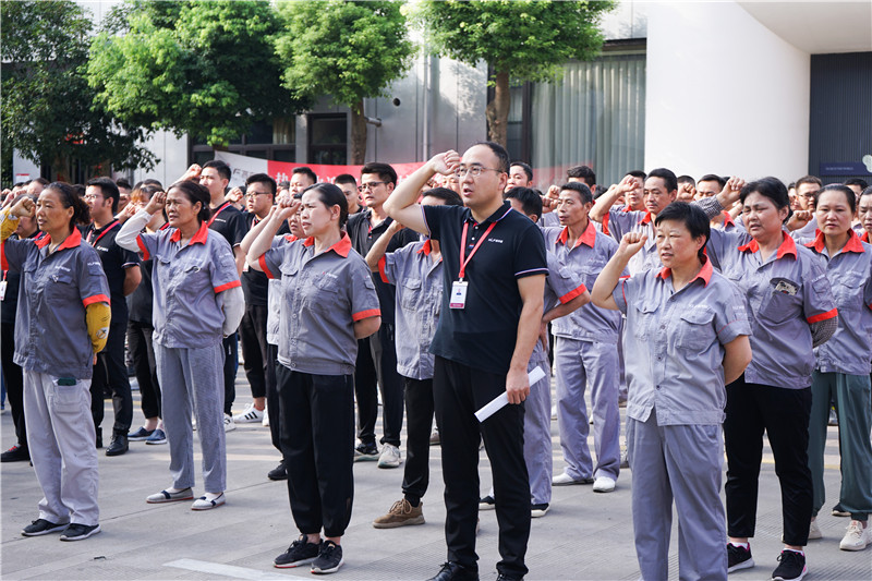 首先進(jìn)行莊嚴(yán)的升國旗奏國歌儀式,伴隨著國歌,國旗緩緩升起,客來福全體員工行注目禮,有國才有家,國是千萬家。隨后全體員工宣讀企業(yè)文化,在整齊、響亮的宣誓中,鄭重拉開啟動大會序幕。