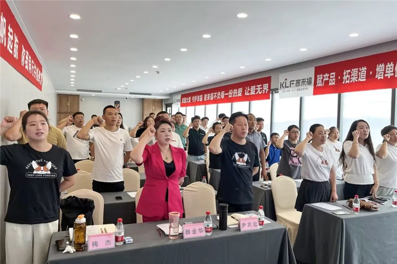 積力之所舉,則無不勝也!在運(yùn)營人員的提議下,客來福家居董事長尹其宏先生、總裁魏金華女士與現(xiàn)場的經(jīng)銷商家人們一同手拉手、心連心,這種莊重而富有溫度的宣誓環(huán)節(jié)讓在場的每一個(gè)人都更重視起團(tuán)隊(duì)的作用,勠力同心方能一往無前。
