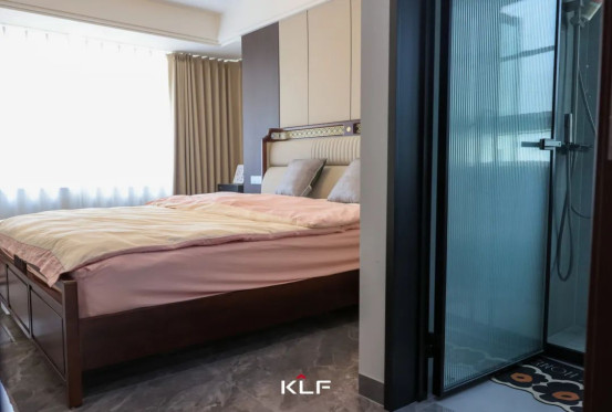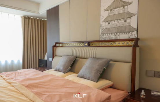 主臥整體色調(diào)偏清新淡雅,又點綴以少許深木色來強調(diào)新中式的穩(wěn)重感。家具造型古樸端莊,照明方式光而不耀,層次布局上講究“宜設(shè)而設(shè),精在體宜”,精妙的動線規(guī)劃讓每一處細(xì)節(jié)都內(nèi)斂克制,卻又精準(zhǔn)回應(yīng)著居者的情感需求。