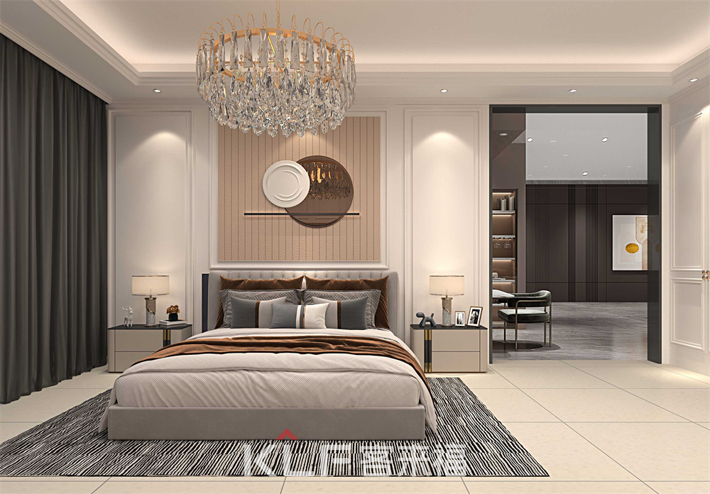 臥室的休息區(qū)和閱讀區(qū)相連,也是古典產(chǎn)品的經(jīng)典搭配,除了隨處可見的線條裝飾,書柜的天地金屬框玻璃們也是混搭的重要原色,感應(yīng)燈光讓你開門后有漸變漸亮,更加人性化。