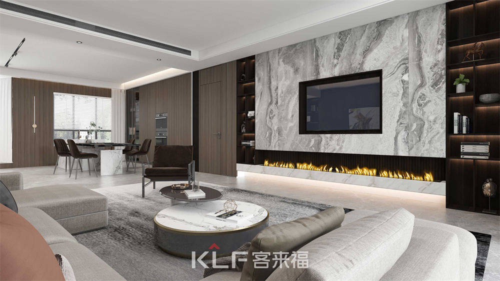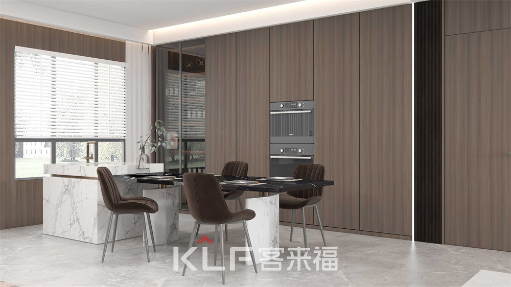 深咖色與木紋的巧妙結(jié)合,令客餐廳更顯沉穩(wěn)大氣。頂天立地柜的嵌入式與半開放式設(shè)計(jì),空間立體感油然而生。三兩親朋相聚洽談,保證輕奢格調(diào)的同時(shí)滿足你的多樣化需求。