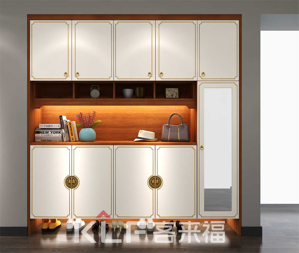 波爾多紅橡搭配米白色面飾,透露出新中式的古典與優(yōu)雅。內(nèi)凹圓角描金線條,彰顯盛世華貴之風骨。對稱式布局,于方寸之間盡顯天地之寬,呈現(xiàn)出中華傳統(tǒng)文化的均衡之美,和諧祥瑞。環(huán)形福字拉手,獨具東方韻味,自得風流。